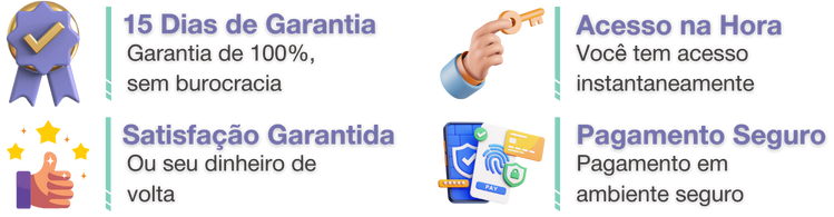 Você tem 15 dias de garantia. Seu dinheiro de volta, sem burocracia.